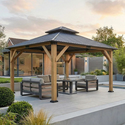 View full detailsCreate an outdoor sanctuary with the Norfolk Leisure Ottawa Cedar Gazebo. This stunning 3x3m structure combines premium cedar wood framing with ant...