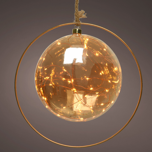 View full detailsIlluminate any indoor space with the Lumineo 20cm Classic Ball In Gold Ring On Rope. Featuring steady micro LED ball lights, this decorative piece ...