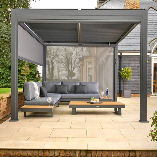 Norfolk Leisure Royce Cube Lite (Nexus) Grey Pergola with Solar LED Lights + 3 Screens